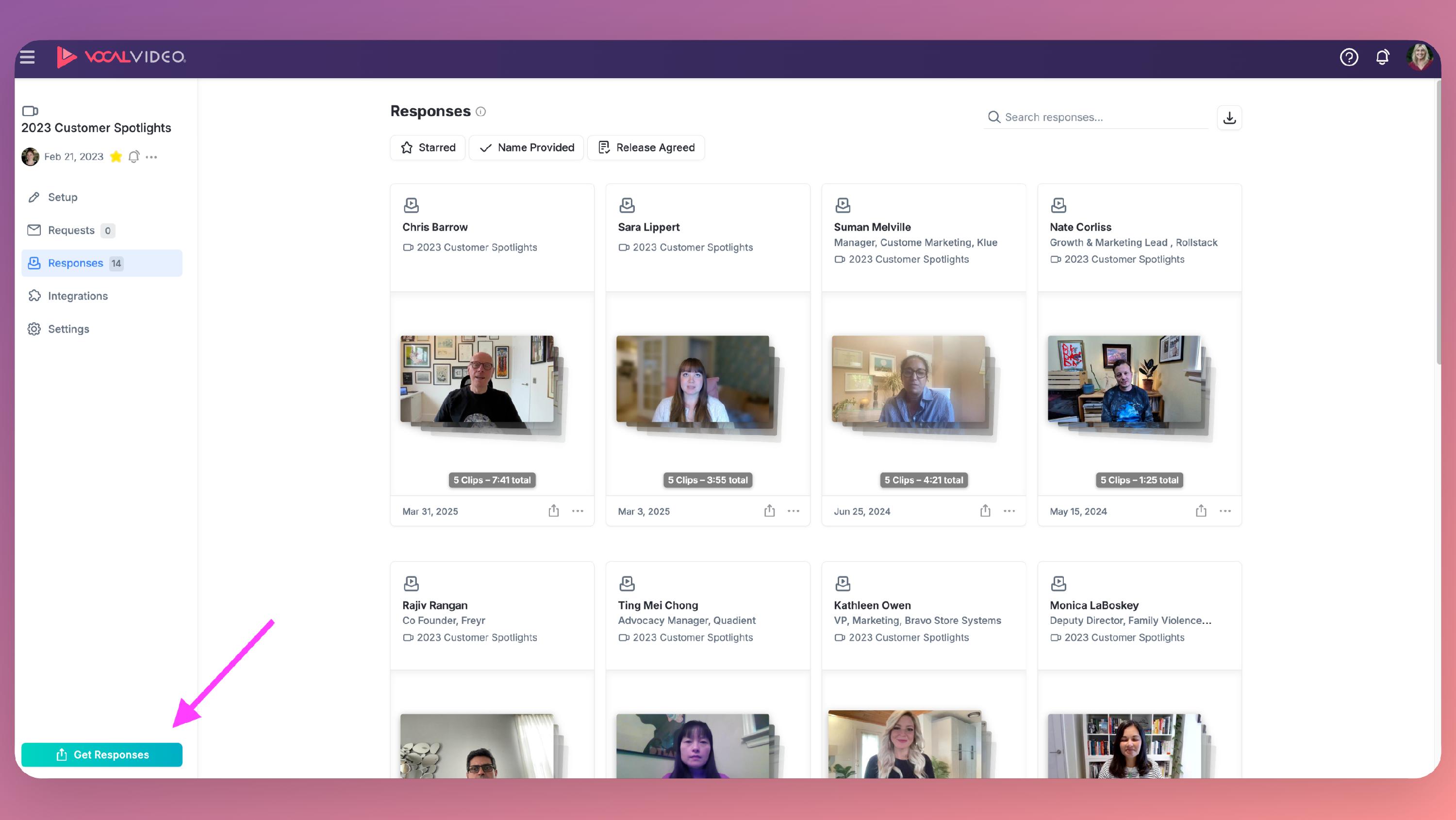 - OR click the green "Get Responses" button in the lower left-hand corner of any page in the collector editor.