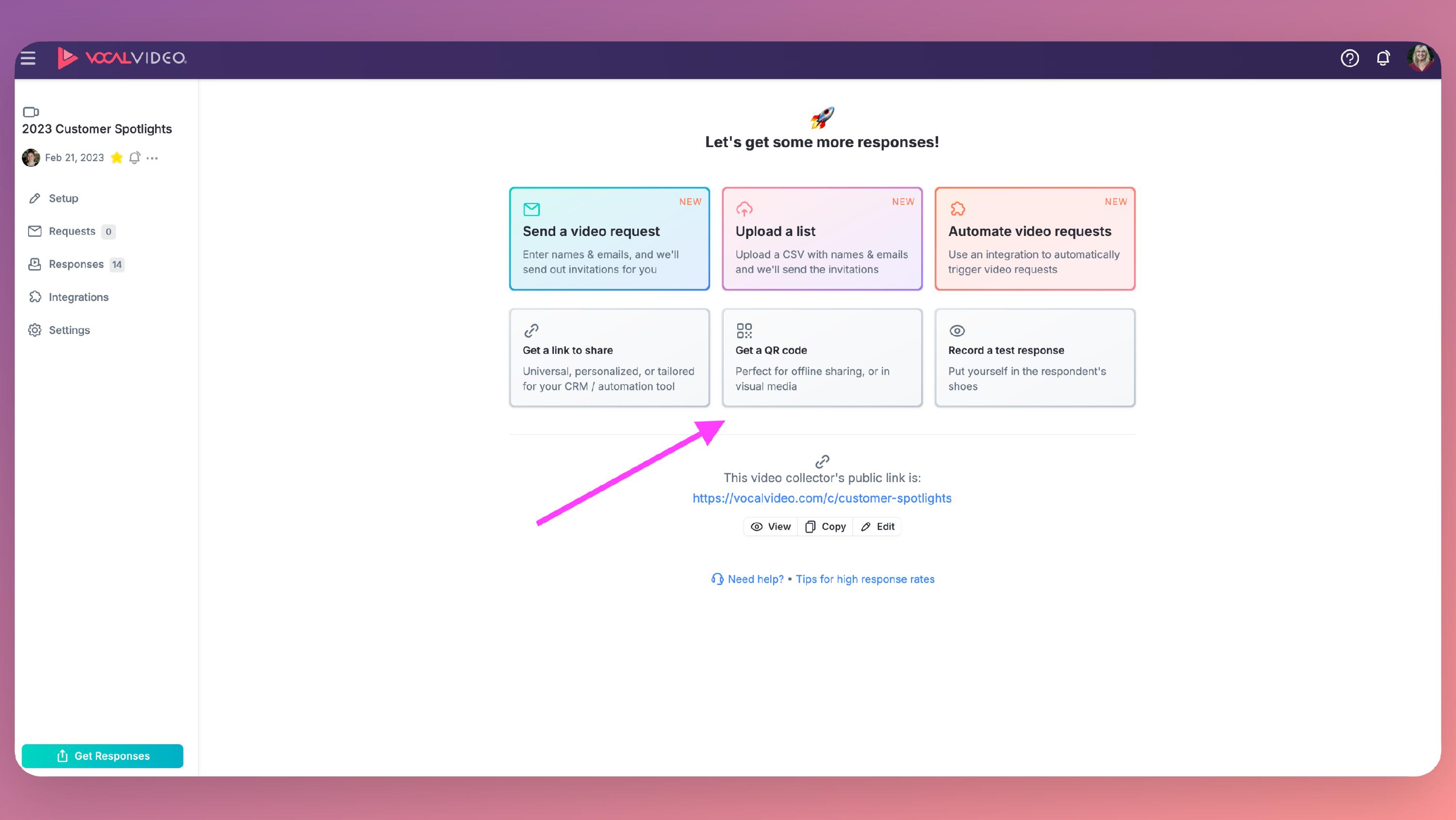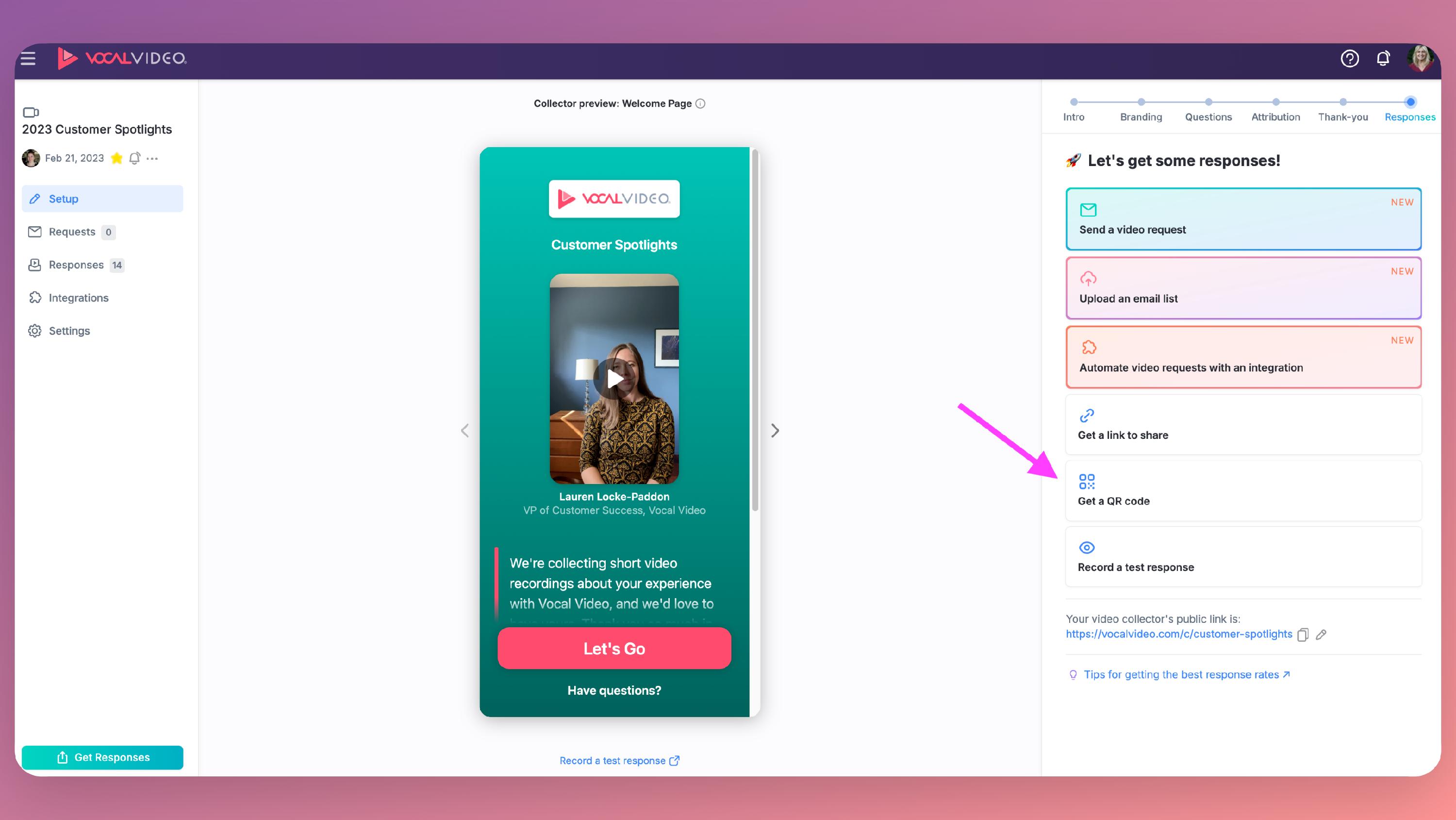 Setting up a QR Code for a Video Collector is very easy. Start by going to the Video Collectors page in the left side-bar.