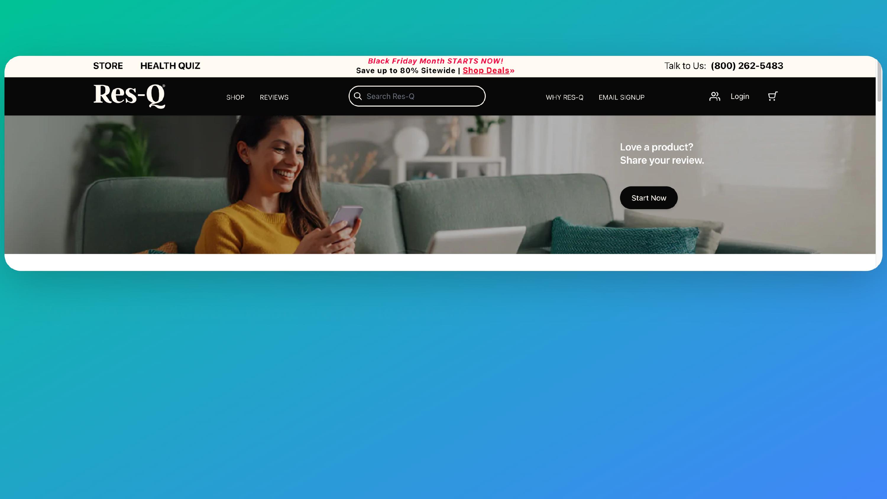 Res-Q includes a CTA on their home page to collect new video product reviews.