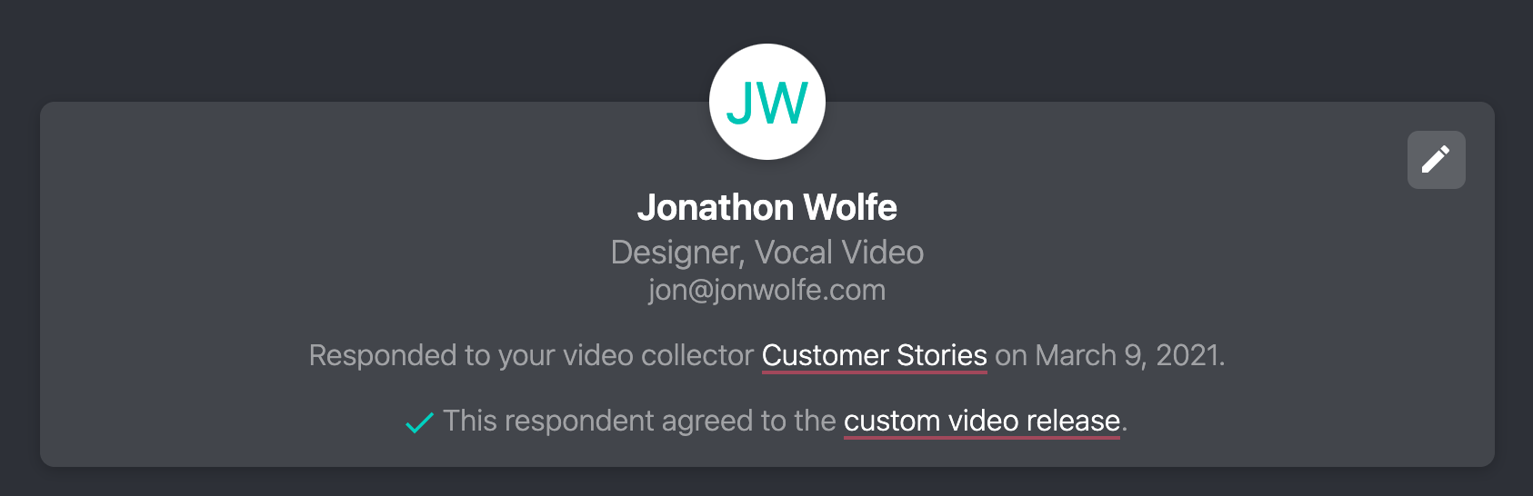 Vocal Video Pro and Enterprise customers can upload custom, company-specific video release language and require that their respondents explicitly consent to this language when submitting their recordings.